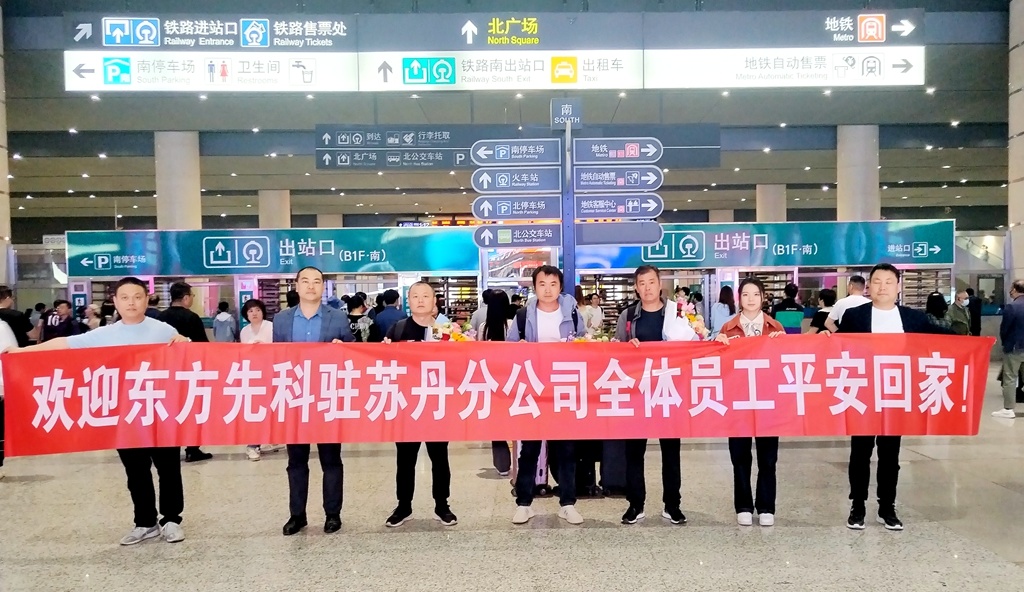 2023年5月6日,東方先科駐蘇丹工作的3名員工在中國駐蘇丹大使館的統(tǒng)一安排下從蘇丹首都喀土穆平安回國。東方先科指派市場(chǎng)部門負(fù)責(zé)人及相關(guān)人員前往車站迎接,并送上鮮花和親切的問候!